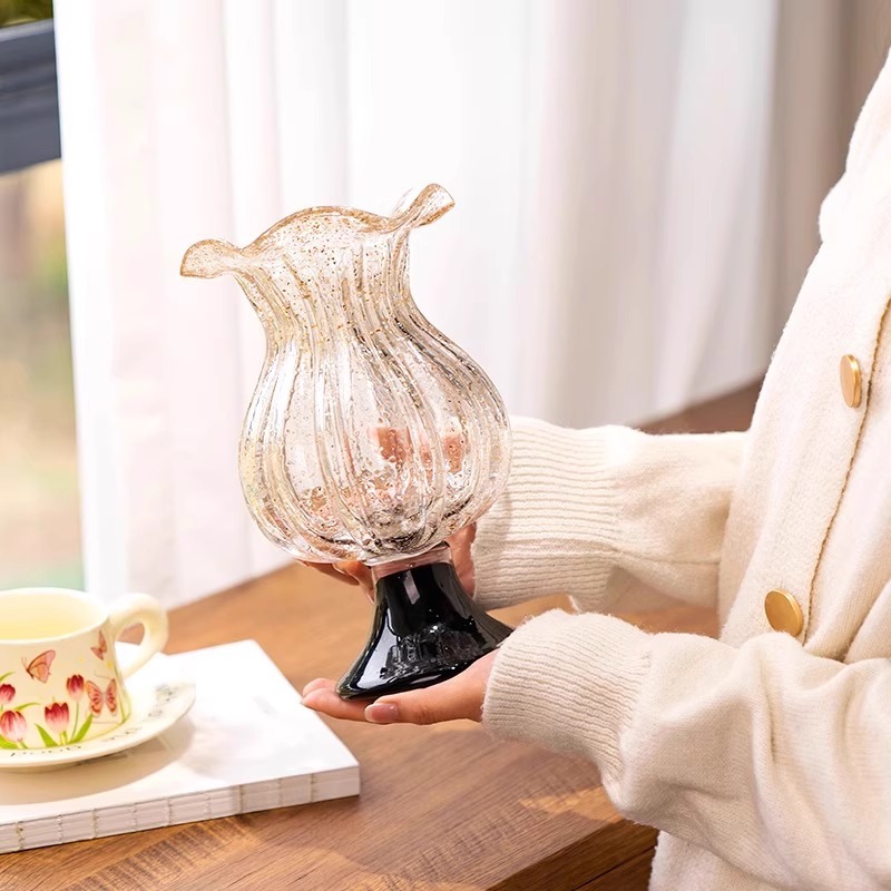 پروڈکٹ کا نام: عیش و آرام کی سونے سے چھڑکنے والی ونٹیج لمبے شیشے کا گلدان